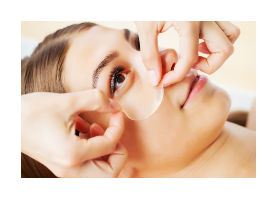 Option Perfect Regard : pose de patchs contour des yeux, lissant et défatiguant, pendant la pose du masque visage